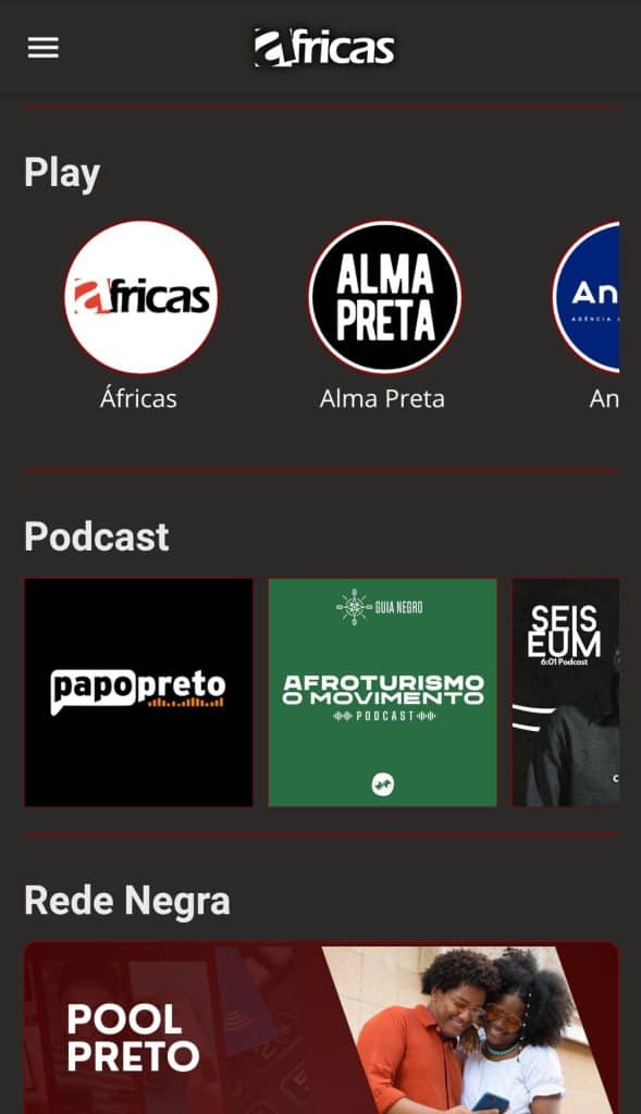 No início de junho, uma iniciativa importante foi anunciada: o aplicativo Áfricas Play. Homônimo do nome da agência de notícias e reportagens voltadas ao mundo negro, ele concentra espaço online para os navegantes terem acesso a consumo de eventos, produtores e artistas da cultura artística negra, abrangendo trabalhos e informações em tempo real sobre tudo que envolve gêneros musicais, literatura, dramaturgia, exposições, podcasts e programas, etc.