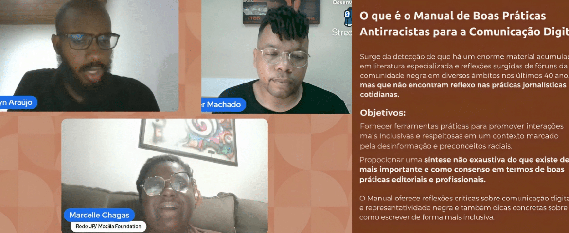 A Rede Jornalistas Pretos (Rede JP) participou, neste último dia 3 de dezembro do Encontro Online dos Jornalistas e Estudantes de Jornalismo Pretos da Universidade Federal do Rio Grande do Sul (UFRGS). O evento, focado no fortalecimento da rede de apoio e na discussão de práticas antirracistas na comunicação, foi resultado de uma parceria com […]